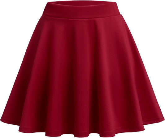 Women Basic Skirt Elegant A-Line Stretchy Skater Skirt High Waist Solid Color Tennis School Short Skirt Mini Skirt