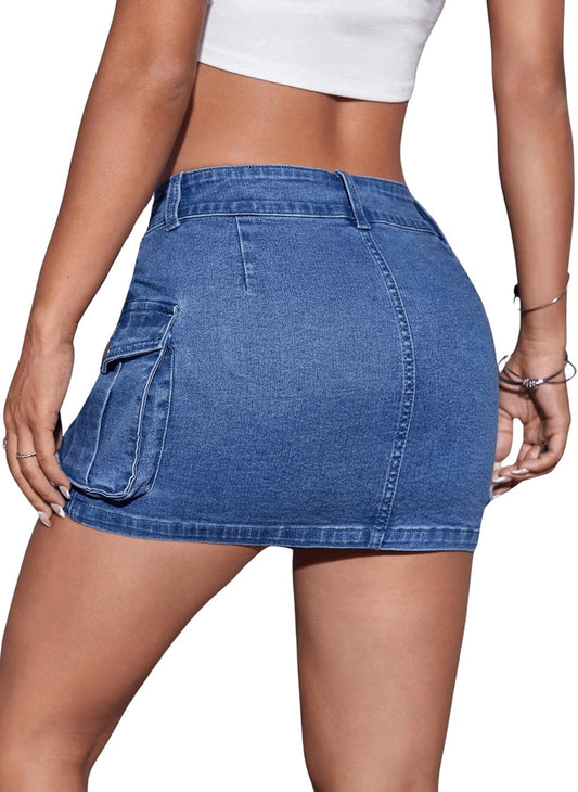 Women'S High Waisted Mini Denim Skirt Zip up Cargo Skirt Sexy Y2K Short Bodycon Skirts with Pockets